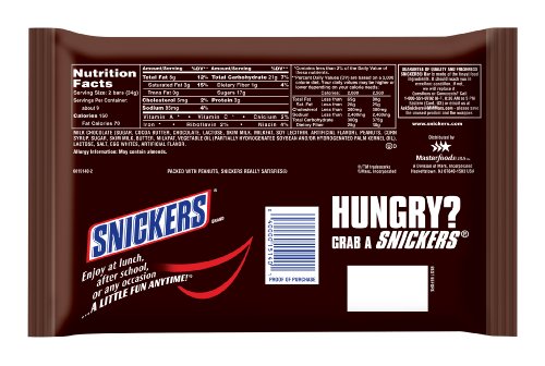 › snickers-minisCalories in Snickers Minis - CandyCalories.com Nov 22, 2018 · However, the original Snickers weighs 2.07 oz, while the bite-size treat weighs 0.9 oz which is awesome. How Many Calories in Snickers Minis. One single Snickers Mini contains 42 calories. But unfortunately bite-size Snickers bars are not sold individually. If you want to enjoy just one or two bite-size Snickers bars, you must purchase the ... › ip › seortSnickers Minis Size Chocolate Candy Bar Bulk Assortment - 35 ... This is a great big ole bag of mini snickers. My mom thorougly enjoys snickers - so she loved this bag of snickers that I got her. I definitely loved that this product qualified for the free shipping and it shipped faster than expected. Retailed sales price is $8.99-10.99. You save a bit with Walmart! SNICKERS Bar nutrition facts and analysis. This serving contains 14 g of fat, 4.3 g of protein and 35 g of carbohydrate. The latter is 29 g sugar and 1.3 g of dietary fiber, the rest is complex carbohydrate. SNICKERS Bar contains 5.2 g of saturated fat and 7.4 mg of cholesterol per serving. 57 g of SNICKERS Bar contains IU vitamin A, 0.3 mg of vitamin C and 0.00 mcg of vitamin D as well as 0.41 mg of iron, 53.01 mg of calcium and 184 mg of potassium. Calories in Twix Minis - CandyCalories.com One serving contains 150 calories, 60 calories from fat, 7g of fat, 4g of saturated fat, 0g of trans fat, 0.5mg of cholesterol, 55mg of sodium, 20g of carbs, 0g of fiber, 15g of sugar, and 2g of protein. That said, if you eat only one Twix Mini, the total fat content will be 2.3 grams, which is totally acceptable and nothing to lose sleep over.