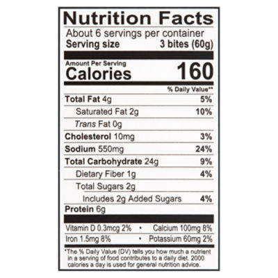 Soft pretzel bites by SUPERPRETZEL nutrition facts and analysis. Soft pretzel bites by SUPERPRETZEL contains 0 g of saturated fat and 0 mg of cholesterol per serving. 53 g of Soft pretzel bites by SUPERPRETZEL contains 1.08 mg of iron, 0.00 mg of calcium. Soft pretzel bites by SUPERPRETZEL belong to 'Frozen Appetizers & Hors D\'oeuvres' food category. The UPC for this product is 073321031855. Food properties. Calories in Soft Pretzels and Nutrition Facts - FatSecret Nutrition Facts Serving Size 1 large Amount Per Serving Calories 483 % Daily Values* Total Fat 4.43g 6% Saturated Fat 0.994g 5% Trans Fat - Polyunsaturated Fat 1.356g Monounsaturated Fat 1.532g Cholesterol 4mg 1% Sodium 2008mg 87% Total Carbohydrate 99.23g 36% Dietary Fiber 2.4g 9% Sugars 0.36g Protein 11.73g Vitamin D - Calcium 33mg 3% Iron 5.61mg Calories in SuperPretzels, Soft, no added salt, frozen | CalorieKing Where do the calories in SuperPretzels, Soft, no added salt, frozen come from? 12.1% 82.4% 5.5% Protein Total Carbohydrate Total Fat 160 cal * The % Daily Value (DV) tells you how much a nutrient in a serving of food contributes to a daily diet. 2,000 calories a day is used for general nutrition advice. mPerks | Meijer Digital Coupons and Rewards | Meijer Join mPerks and save more at Meijer. Get digital Meijer coupons, personalized rewards, and instant savings at checkout.