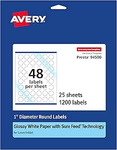 Avery 2" Glossy White Round Labels, Sure Feed, Full Bleed --Print to the Edge, 120 Thank You Labels (22807)