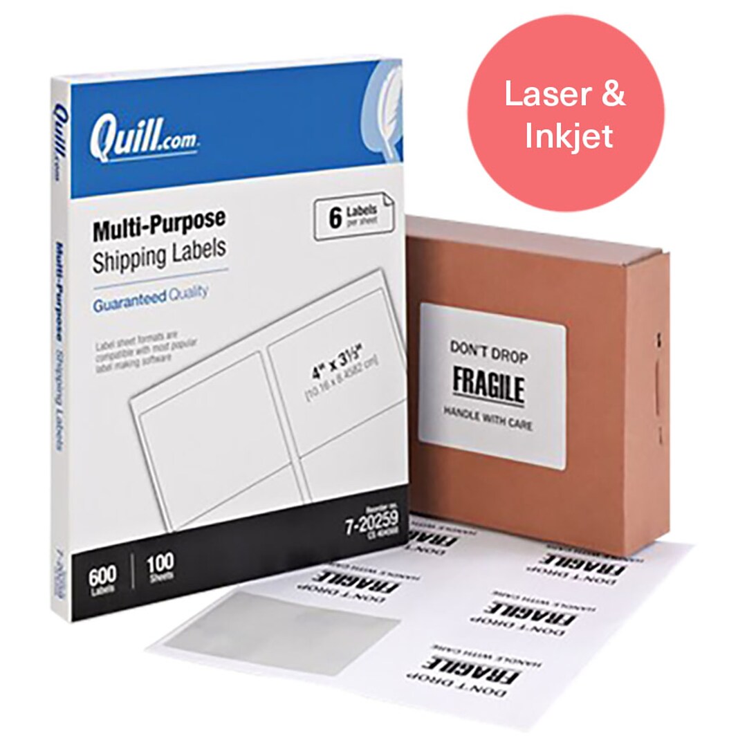 Quill Brand® Laser/Inkjet Shipping Labels, 3-1/3" x 4", White, 600 Labels (Compare to Avery 5164, 8164 & 8464)