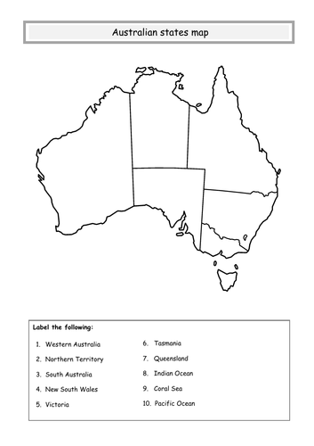 Label Australia Worksheet - HASS - Year 3 (teacher made) - Twinkl This label Australia worksheet works as a matching activity. A blank map of Australia is displayed on the worksheet with boxes and arrows pointing to different territories and states. Children will need to cut out and stick down the labels on the second page included to correctly label all of the different parts of the country.