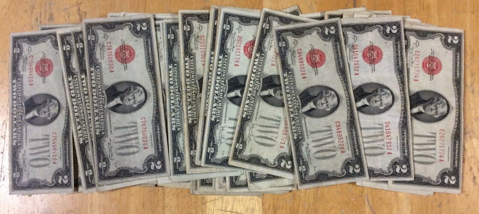 Two Dollar Bill Red Seal Series 1928 US Currency Good or Better Each bill comes in a currency sleeve for protection. These Red Seal Two Dollar Bills will make a nice addition to any currency collection! Information on these Red Seal Series 1928 Two Dollar Bills: In 1929 all US Currency was changed to its current modern size. The $2 bill was kept only as a United States Legal Tender Note.