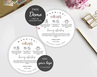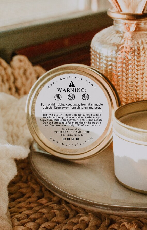 Candle Warning Label Template, EDITABLE Candle Care & Fire Safety Inst Candle Warning Label Template, EDITABLE Candle Care & Fire Safety Instructions, Packaging Label, Round Circle Care Card, Candle Maker Seller Tired of looking at those bland and boring warning labels? Want to elevate your Candle Warning labels to the next level? Now you can create your own stylish label design and u
