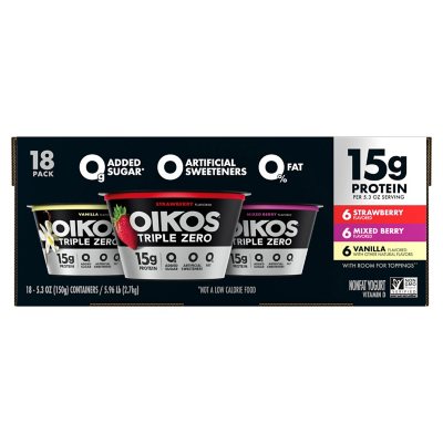 The Best Yogurt Brands (& The Worst) For Your Health — Eat ... Jan 17, 2022 · Oikos Pro Mixed Berry Yogurt 5.3 oz serving : 140 calories, 3 g fat (0 g saturated fat), 60 mg sodium, 8 g carbs (0 g fiber, 3 g sugar), 20 g protein, Calcium 15% This yogurt is low on the bad stuff and rich in the good stuff. Mixed Berry Oikos Triple Zero High Protein Nonfat Greek Yogurt Oikos Triple Zero Nonfat Greek Yogurt Mixed Berry has 15 g of protein, 0 added sugar*, 0 artificial sweeteners, and 0% fat per 5.3 oz. cup. All the protein and deliciousness you want to reach your potential. *Not a low calorie food.