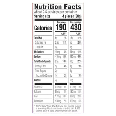 Bagel bites nutrition label. Kellogg Company | Nutrition Labeling Nutrition Labeling. At Kellogg, transparency is our ongoing goal. We empower consumers to make good nutritional choices by providing comprehensive nutrition and ingredient information on our packaging. Pioneers of front-of-pack GDAs. Back in the 1930s, Kellogg was among the first companies to include nutrition labeling and food information on ... Bagel Bites Calories and Nutrition Information. Page 1 What are Nutritionix Track app users eating from Bagel Bites ? Popularity. 1. Mini Bagels, Cheese & Pepperoni. 190 cal. 2. Pizza Bites, Cheese & Pepperoni. 210 cal. Bagel Ingredients - New Yorker Bagels UNBLEACHED UNBROMATED ENRICHED WHEAT FLOUR, WATER, BROWN SUGAR, MALT SYRUP, contains 2% or less of each of the following: WHEAT GLUTEN, SEA SALT, YELLOW CORN FLOUR, YEAST, RAISIN JUICE CONCENTRATE, MALT POWDER, MOLASSES POWDER, NATURAL COLOR (PAPRIKA, TURMERIC), HONEY POWDER, SOYBEAN OIL, ASCORBIC ACID (VITAMIN C), ENZYMES. Egg Everything Bagel Bagel Bites Nutrition Facts. Calories, carbs, fat, sodium & more ... Get nutrition information for Bagel Bites items and over 200,000 other foods (including over 3,500 brands). Track calories, carbs, fat, sodium, sugar & 14 other nutrients. ... Bagel Bites Cheese, Sausage & Pepperoni Pizza Snacks. 4 pieces (88g) Nutrition Facts. 190 calories. Log food: Bagel Bites Bacon, Egg & Cheese Breakfast Bites.