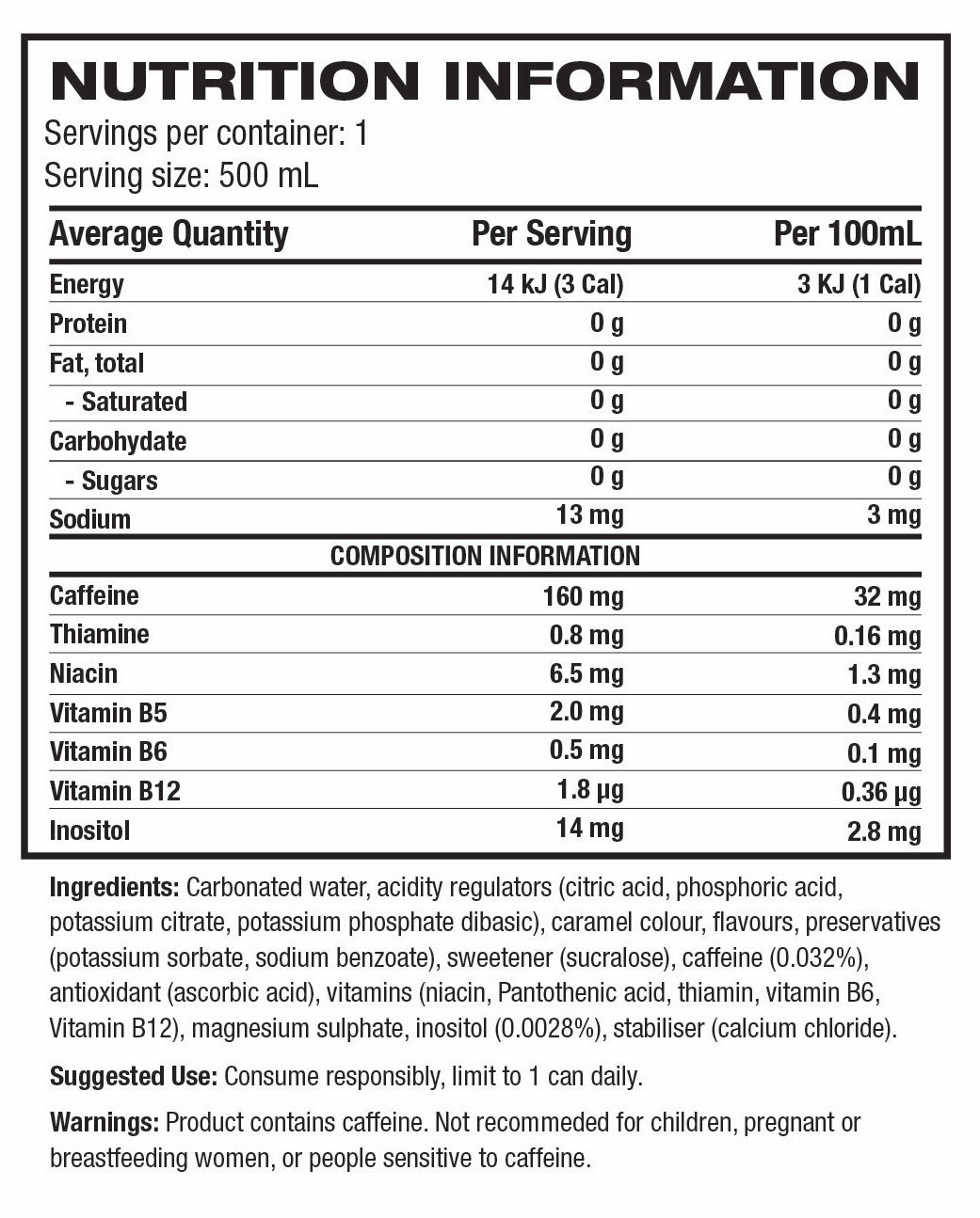 Bang miami cola nutrition facts. Bang Energy Drink (Unbelievable) Lab Test Results - REIZECLUB According to independent lab testing performed by Alpha Testing Labs, a single 16 fl. oz (473ml) can of Bang Energy Drink contains: 34.06mg of caffeine (300mg of caffeine is printed on the can) 63.86mg of CoQ10 18.92mg of Isoleucine 104.06mg of Leucine 18.92mg of Lysine Find out more as I unleash the nutrients found in Bang energy drinks. Bang Energy Drink Ingredients Label (Analysis) Apr 02, 2021 · Every 16 fl. oz. can of Bang Energy Drink contains 300mg of caffeine, which makes Bang one of the strongest energy drinks you can get from your local stores and supermarkets. According to the FDA, the daily caffeine limit for healthy adults is 400 mg. Any intake exceeding the caffeine limit can make you experience adverse effects such as: Insomnia Caffeine in Bang Energy Bang Energy contains 18.75 mg of caffeine per fl oz (63.40 mg per 100 ml). A 16 fl oz can has a total of 300 mg of caffeine. Total Caffeine (mg) 400 360 320 280 240 200 160 120 80 40 0 Bang Energy (300 mg) Coca-Cola Classic (34 mg) Bang Energy (300 mg) Monster Energy (160 mg) Red Bull (80 mg) Starbucks Triple Shot Energy (225 mg) Sources BANG® Energy Drinks 12 Pack | 16 Ounces with CoQ10 & Super … Bang Energy is not your typical sugar-filled, crash-inducing energy drink. Every 16-ounce can contains 300 milligrams of caffeine which has been shown to increase endurance as well as strength in some cases. Yet every one of our 40+ flavors has ZERO sugars, carbs, or calories with a taste like no other!