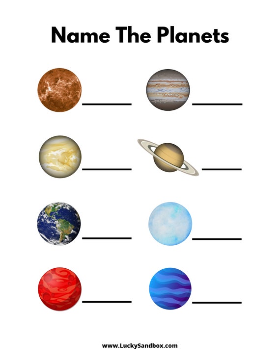 Solar System and Planets Worksheets - Math Worksheets 4 Kids This identify the eight planets pdf worksheet for grade 4 and grade 5 helps test the knowledge of kids. Emphasize on the order of the planets; keeping in mind their distance from the Sun. Name the Planets This worksheet consists of pictures of the eight planets. The kids are expected to identify the planets and write their names.