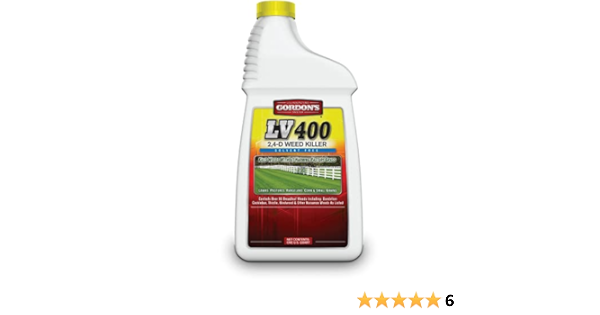 Gordon's 1 Quart LV 400 2,4-D Weed Killer Solvent Free Get dependable broadleaf control with Gordon's LV 400. 1 gallon covers up to 174,240 sq. ft. (4 acres) on listed pastures. Features Controls 90+ listed species of broadleaf weeds Use in pastures, lawns, rangeland, corn and small grains, and other non-crop grass areas Concentrated, low-odor 2,4-D formulation Mixes easily with liquid fertilizers