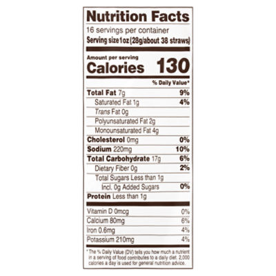 38 veggie straws food label