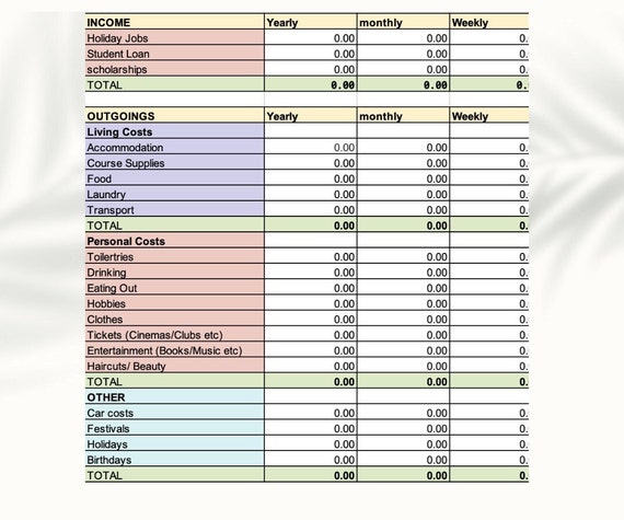 2023 Student Budget Template includes Weekly Monthly and - Etsy