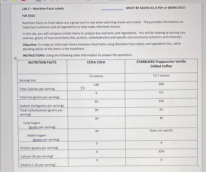 43 what nutrition facts labels tell you worksheet answers