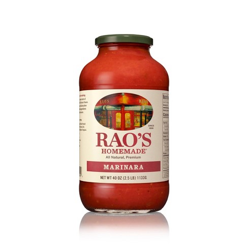 Rao's Homemade Marinara Sauce: Calories, Nutrition Analysis & More Personalized health review for Rao's Homemade Marinara Sauce: 80 calories, nutrition grade (B), problematic ingredients, and more. Rao's Homemade® Marinara Sauce, 32 oz - QFC Ship · 8 ; Savings. Buy 3 or More, Save $2.00 Each ; Non GMO. Nutrition Facts. 7.0 servings per container. Serving size0.5 cup (125g). Amount per serving. Calories ...